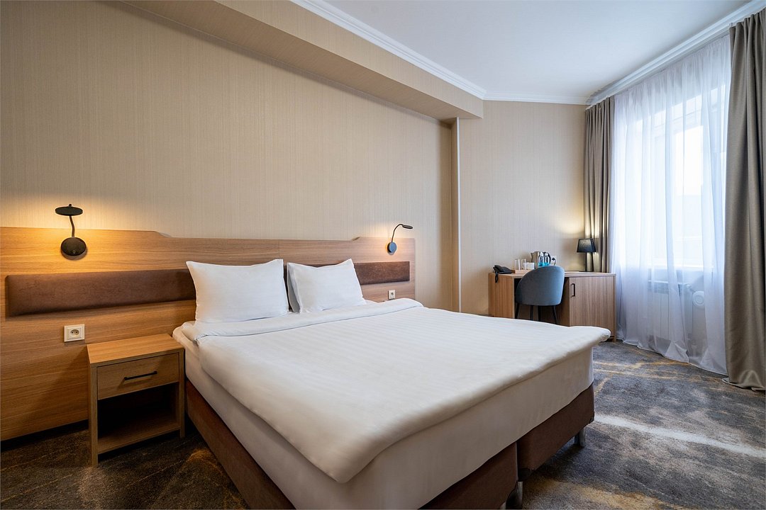 Стандарт Двухместный New — самый новый номер в Гостинице Европа площадью 15 кв.м. Кровати в номере подходят как для размещения одного гостей, так и двоих. Современный лаконичный дизайн, новый интерьер комнаты, комфортная рабочая зона — все самое лучшее для Вашего отдыха и проживания.Услуги и удобства