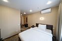 Просторный номер, площадью 40 м с уютным уголком для отдыха и всеми удобствами. Данная категория номера отлично подойдёт для семейного отдыха. Для удобства гостей мы предлагаем варианты размещения до четырех гостей в номере.Услуги и удобства