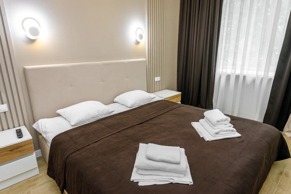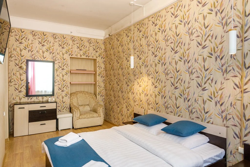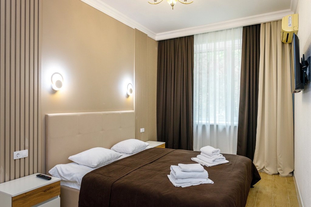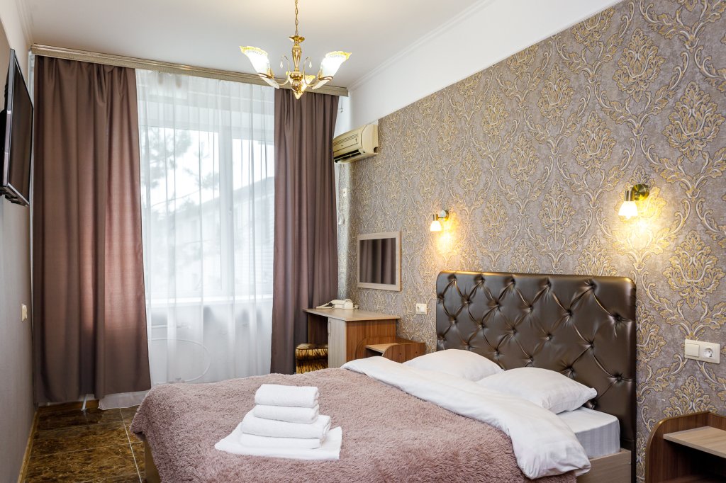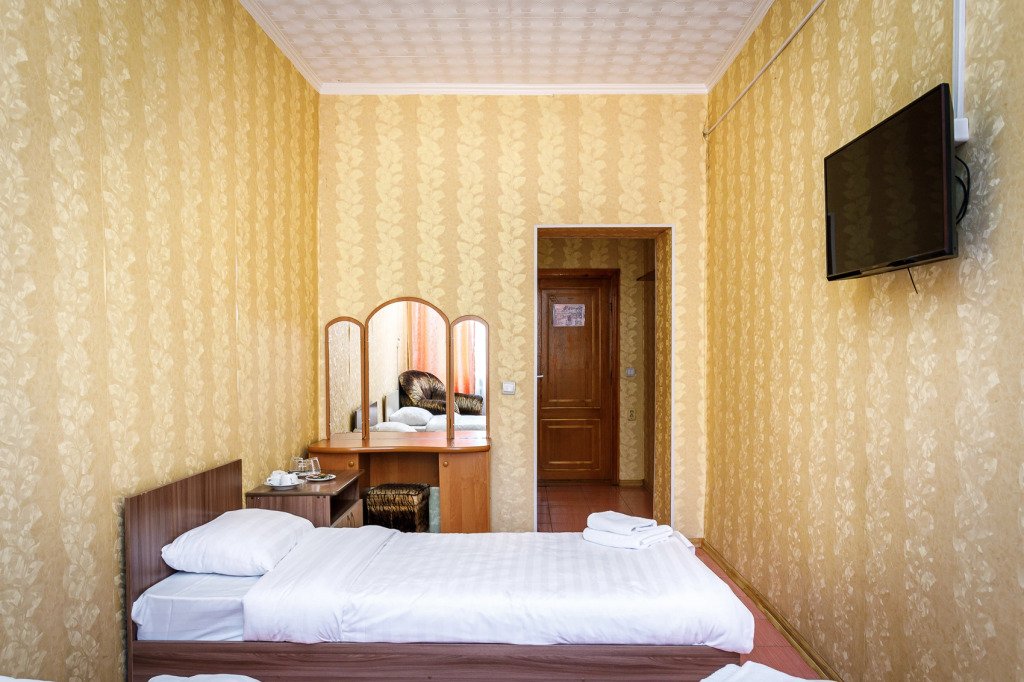 В номере вас будут ждать телевизор и халат. Оснащение зависит от выбранной категории номера.