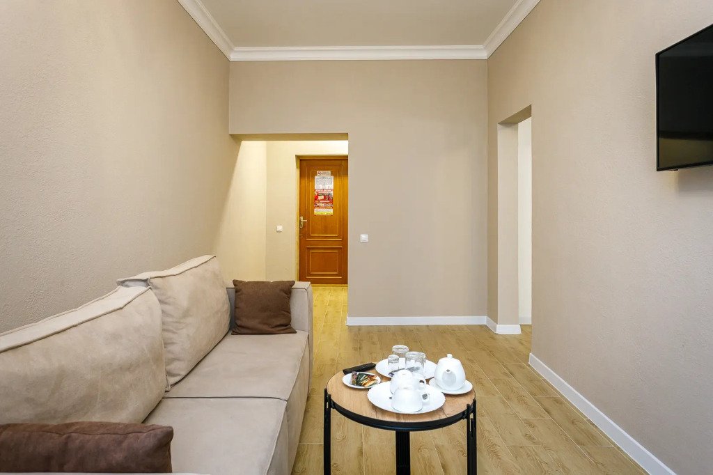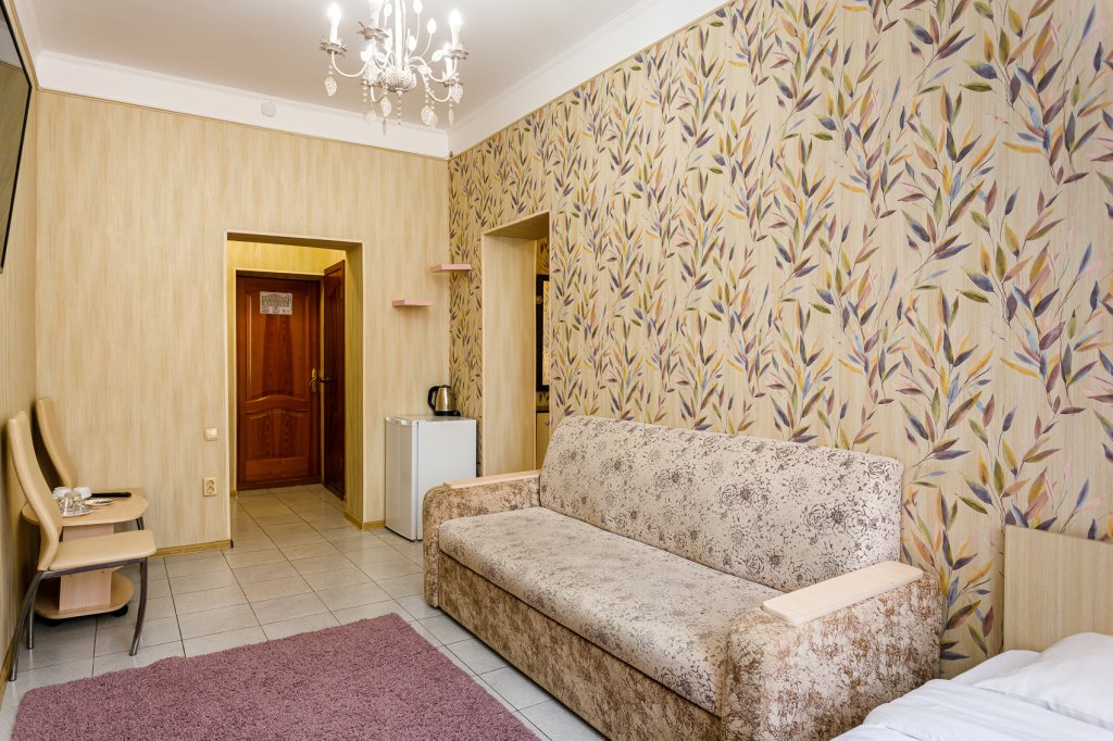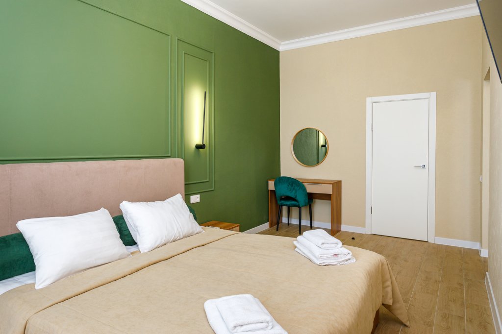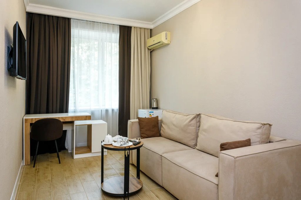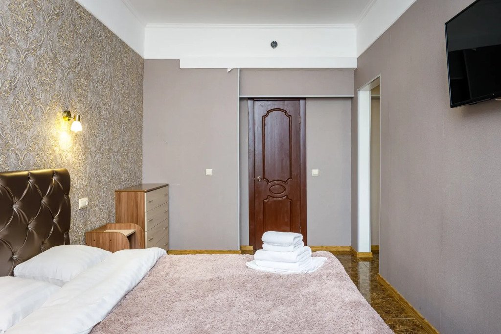 В номере вас будут ждать телевизор и халат. Оснащение зависит от выбранной категории номера.
