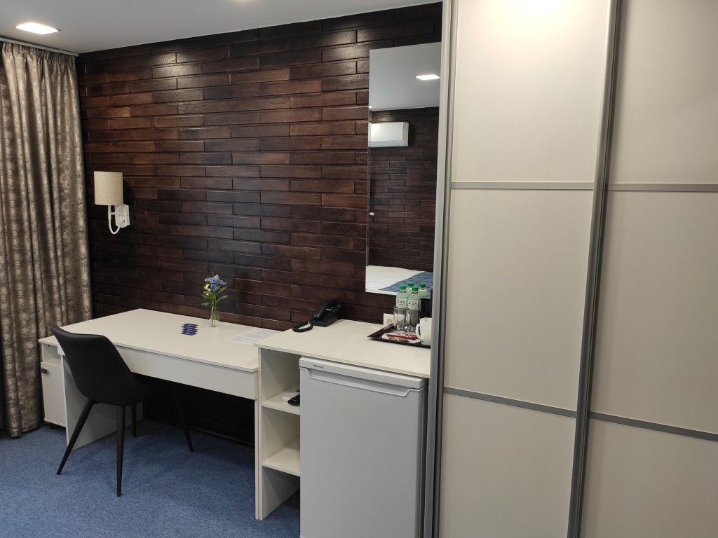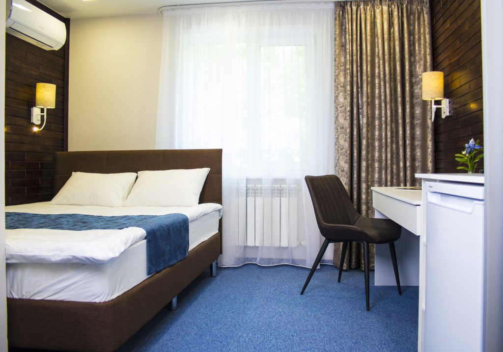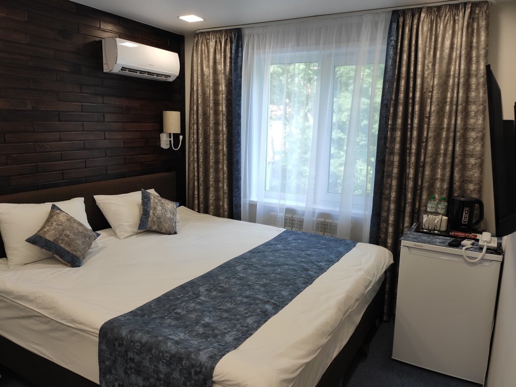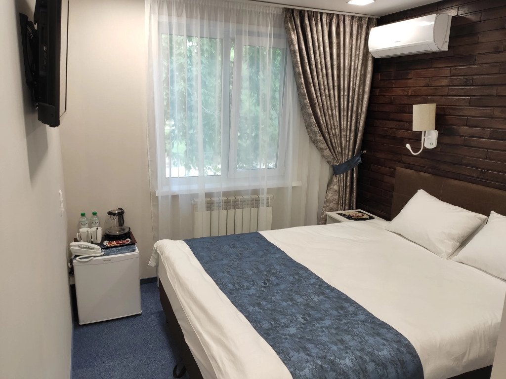 В номере вас будут ждать телевизор, мини-бар и халат. Оснащение зависит от выбранной категории номера.