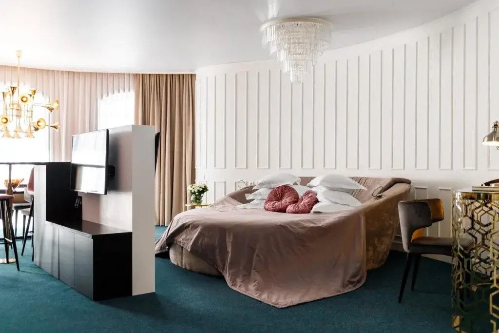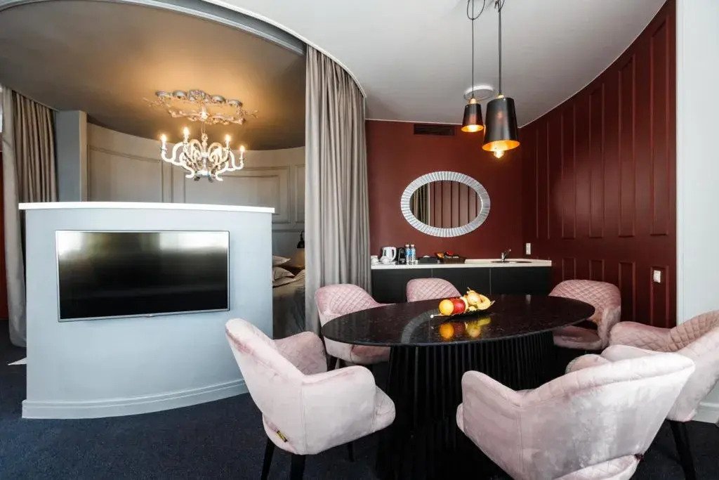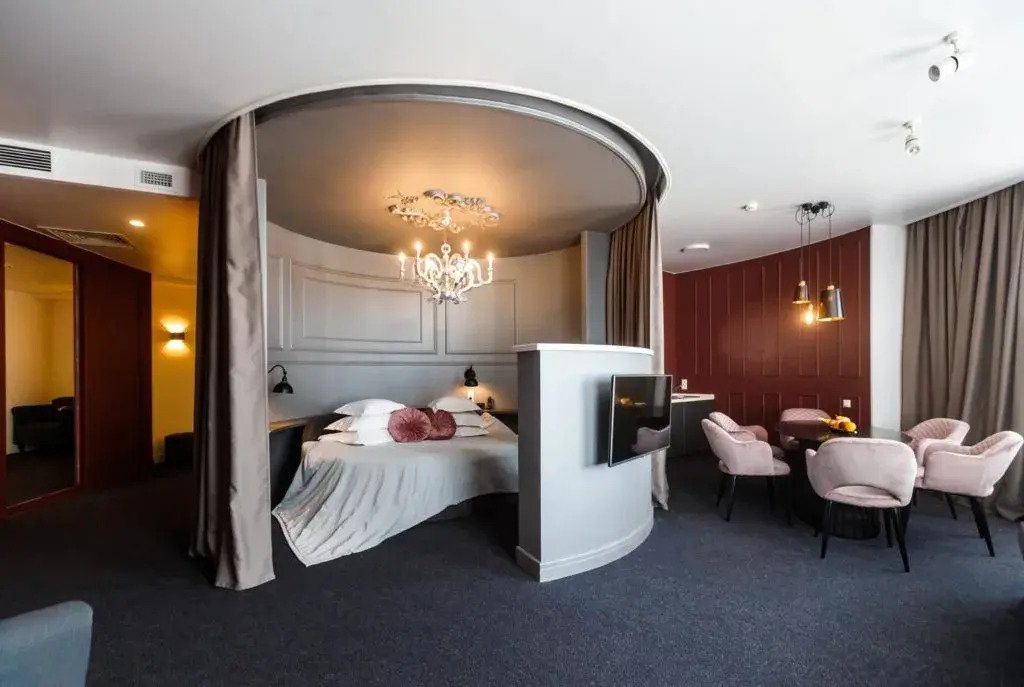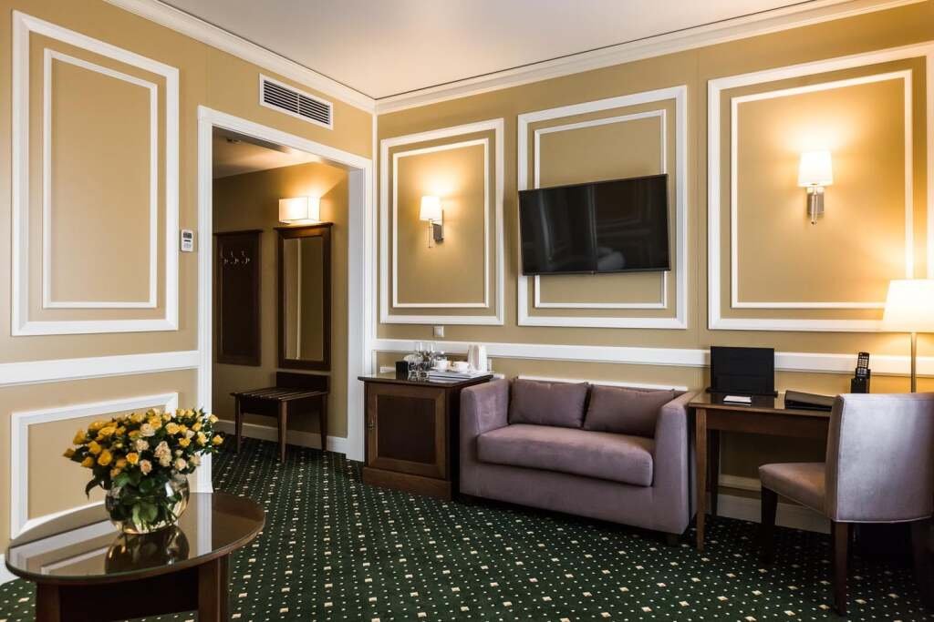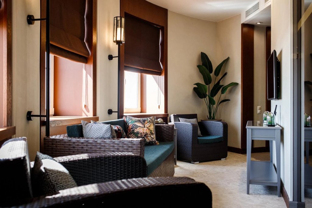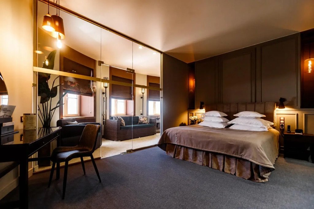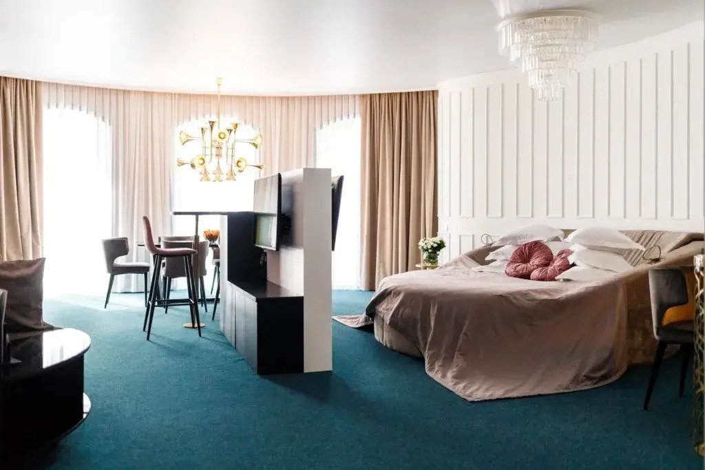 В номере вы найдёте душ, телевизор, мини-бар, халат и тапочки. Оснащение зависит от выбранной категории номера.
