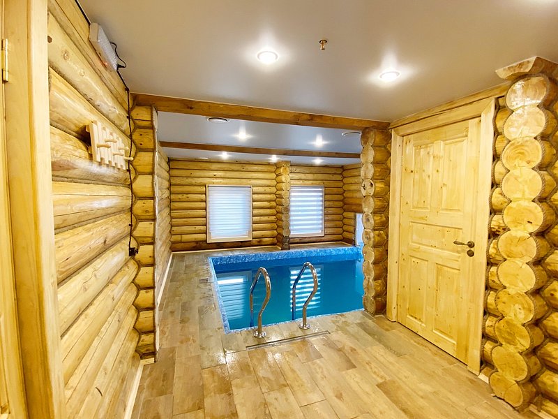 Зал рассчитан на компанию до 8 человек (максимальная вместимость до 10 чел). Финская парня. Бассейн 5х3м., глубиной 160 см. Температура воды в бассейне +24-26 градусов.