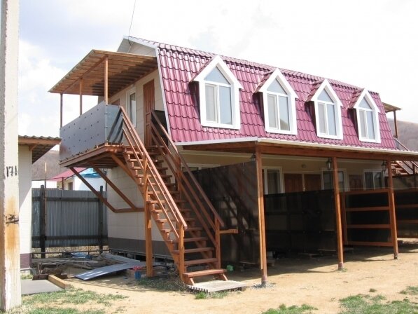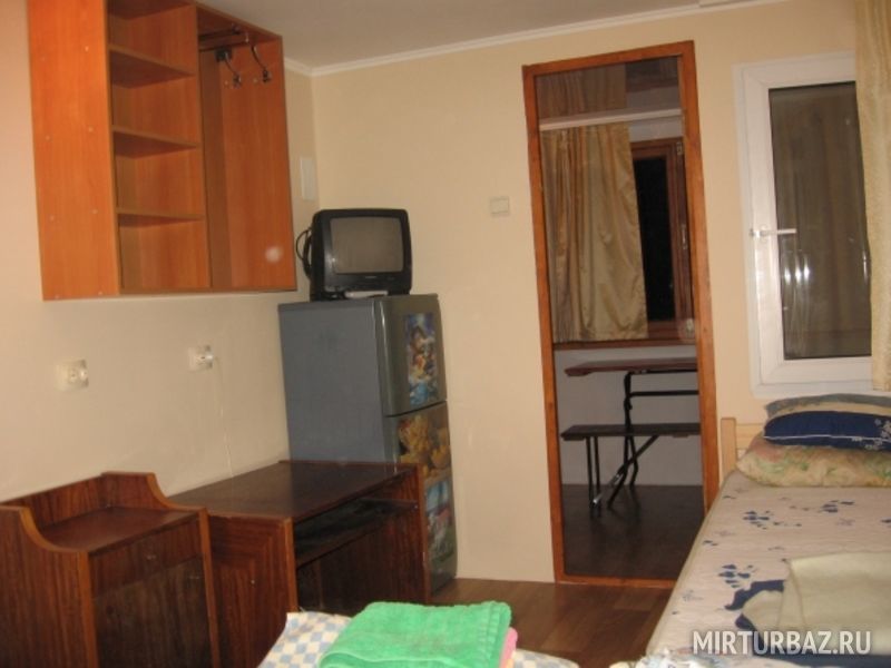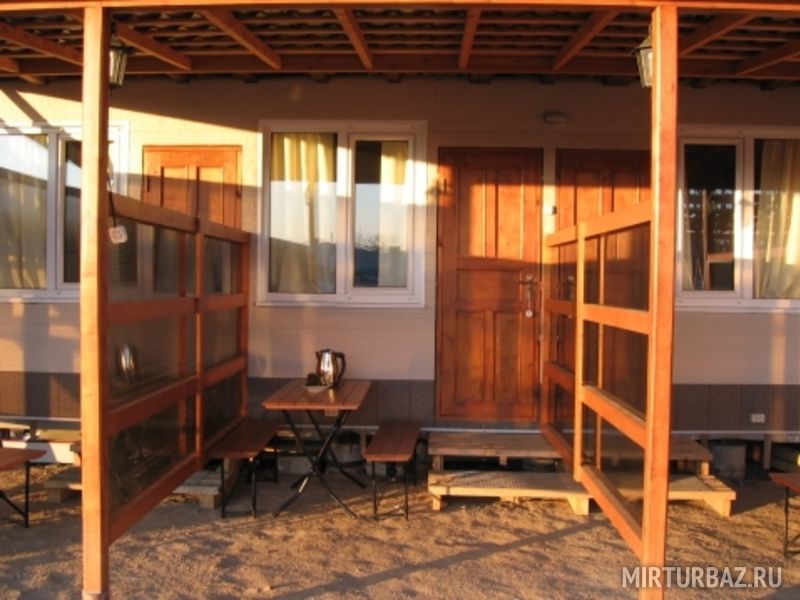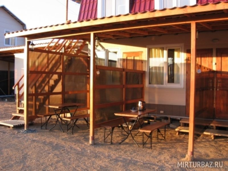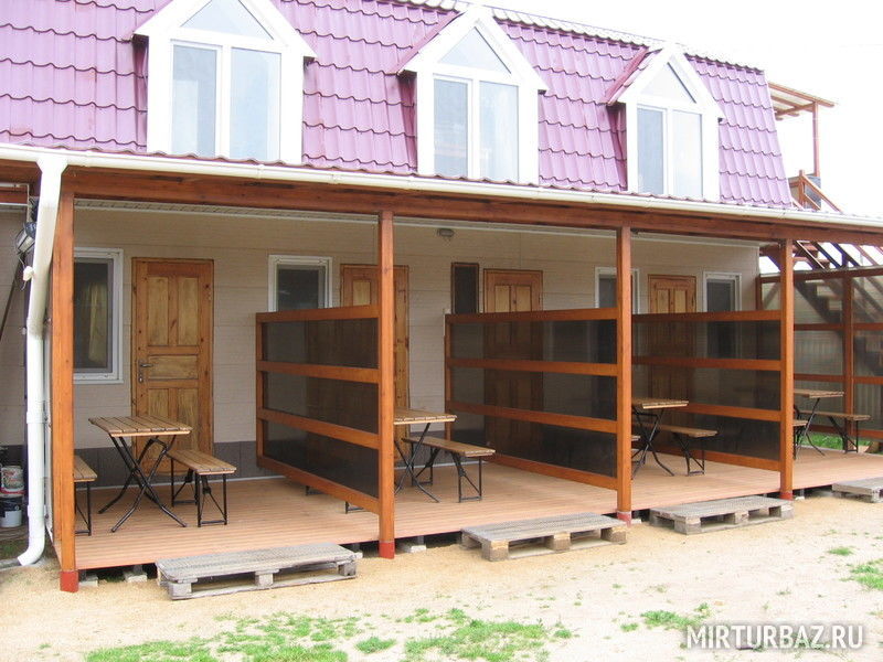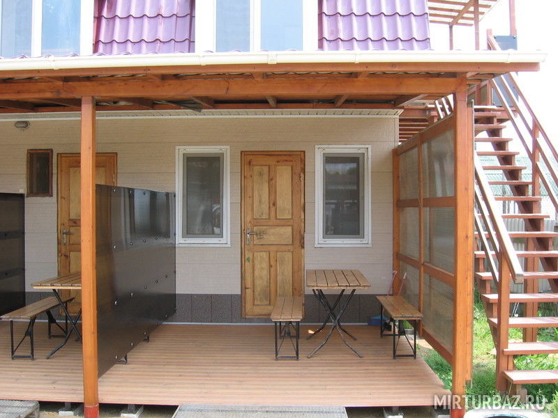 - балкон под навесом на две комнаты, стол + две скамейки на каждую комнату;