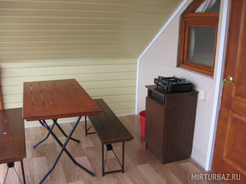 - своя кухня, раковина с питьевой водой из собственной скважины, кухонная утварь, вся необходимая посуда для приготовления и приёма пищи, газ.плита, электрочайник, стол, две скамейки;