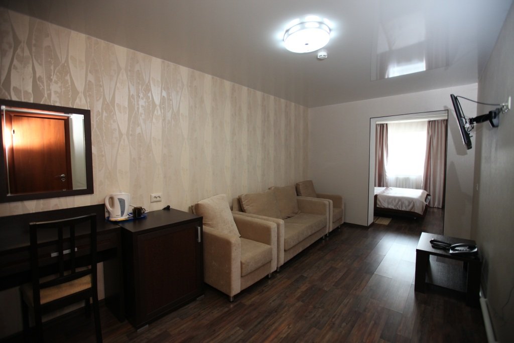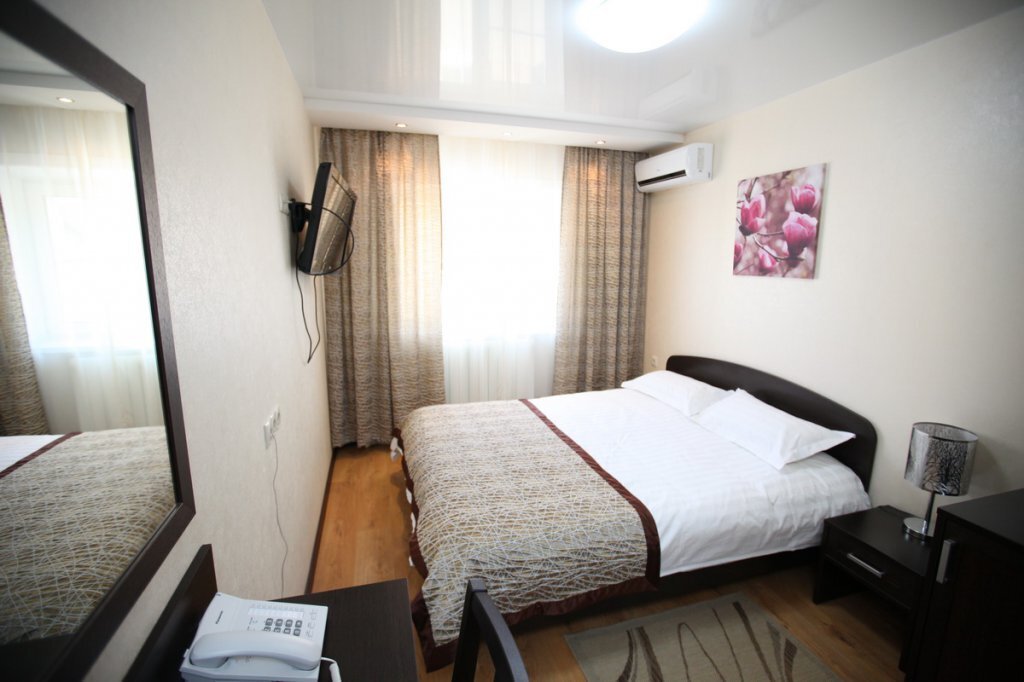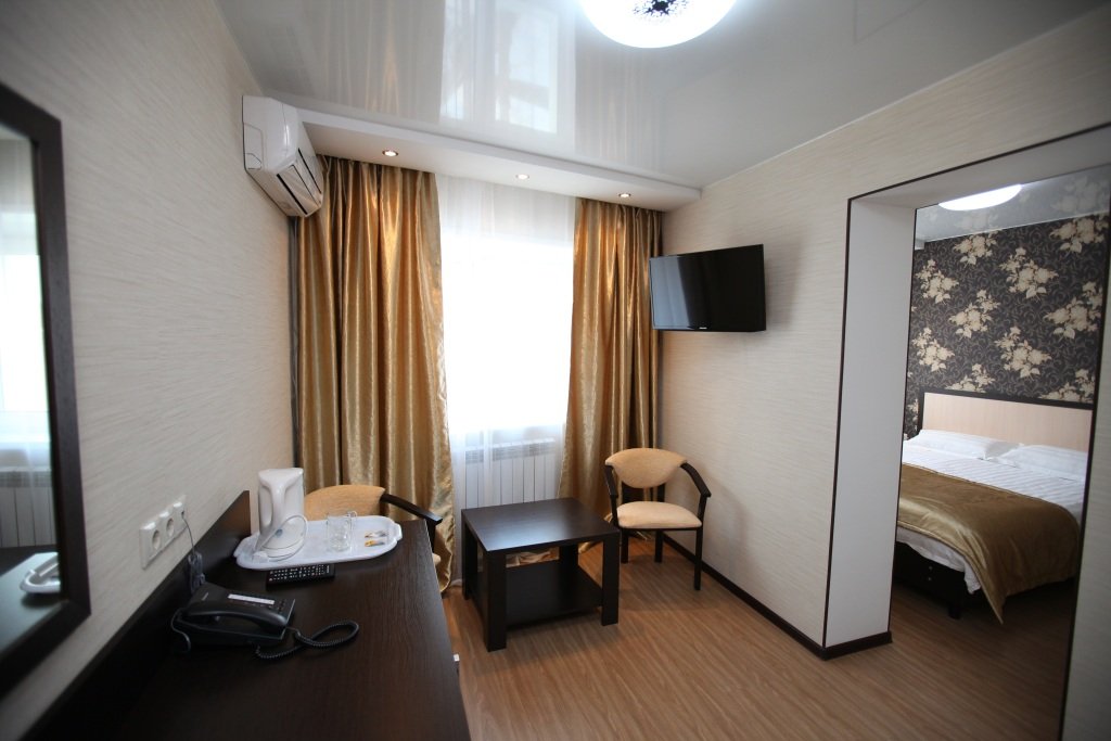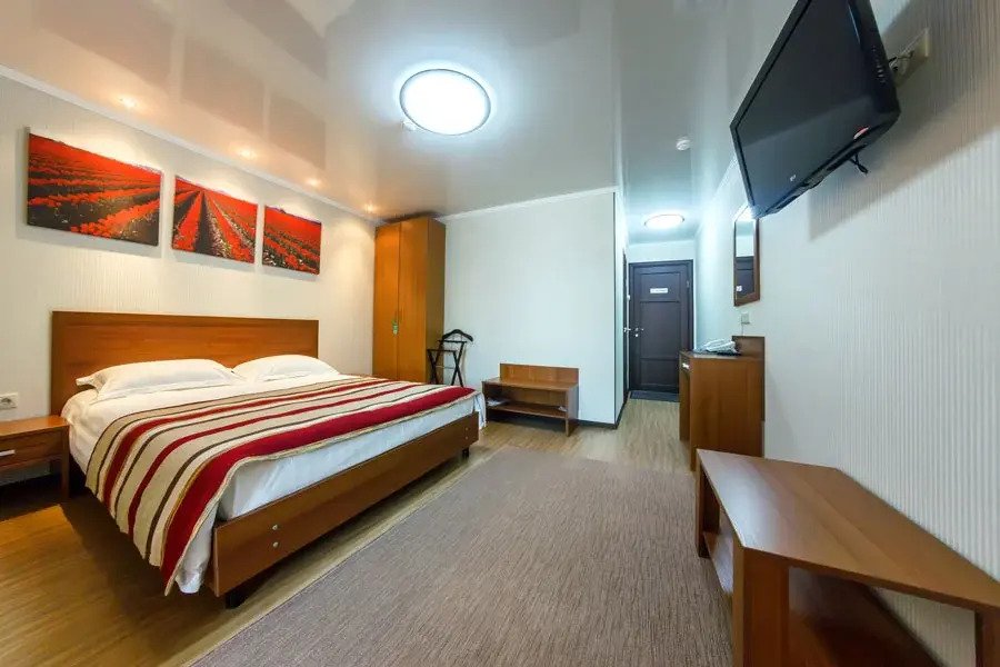В номере вы найдёте телевизор. Оснащение зависит от выбранной категории номера.