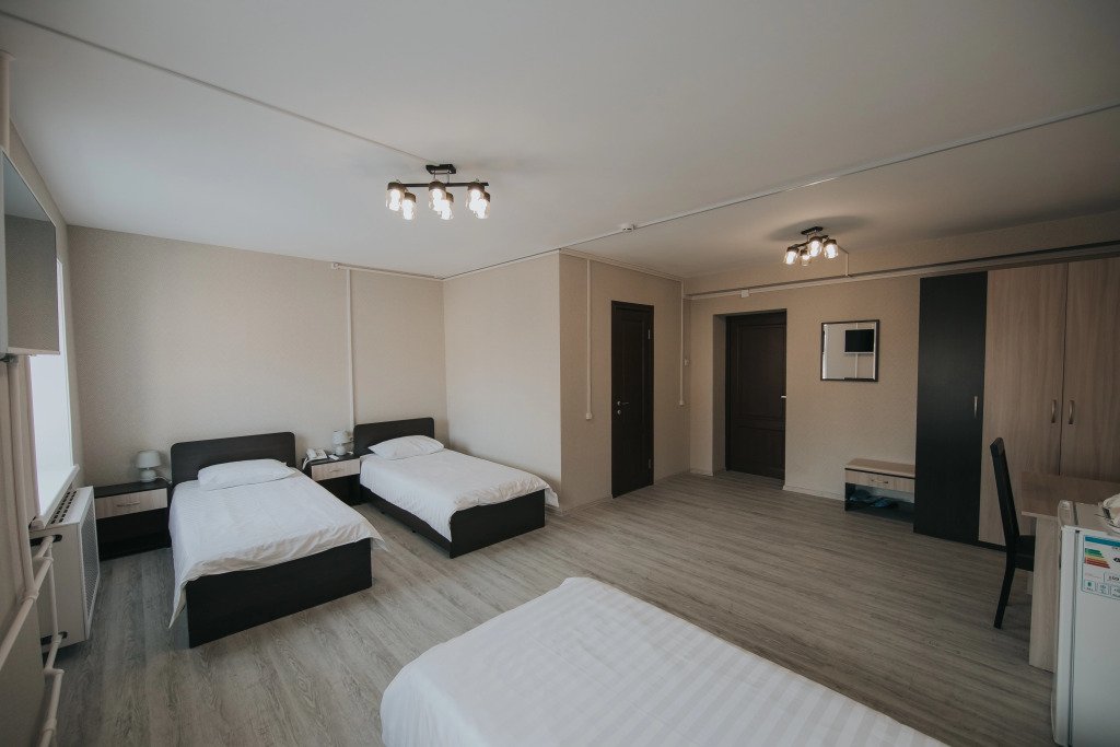 Номер уютно обставлен и оснащён необходимым, чтобы отдохнуть после долгого и насыщенного дня. Имеются телевизор. Оснащение зависит от выбранной категории номера.