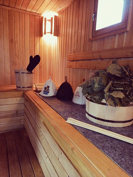 Есть банные шапки, полотенца, банные простыни, постельное бельё. Дубовые веники предоставляются за дополнительную плату.