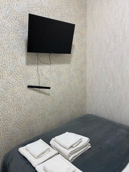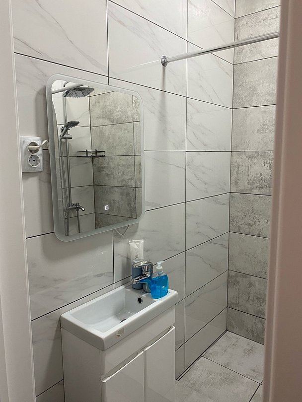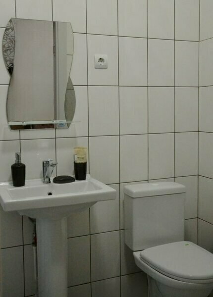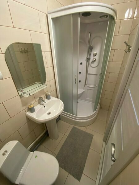 Душ, туалет, утюг, кухня с холодильником, микроволновка и электрочайник общие расположен в холле.