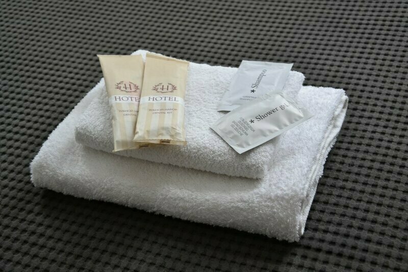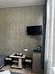 В номере установлены две односпальные кровати, а также есть холодильник, шкаф, прикроватные тумбочки, журнальный столик, телевизор, кондиционер, зеркало, душ, туалет, халат, тапочки, туалетно-косметические принадлежности (зубной набор, гель для душа, шампунь), электрочайник, кружки, чай, сахар.