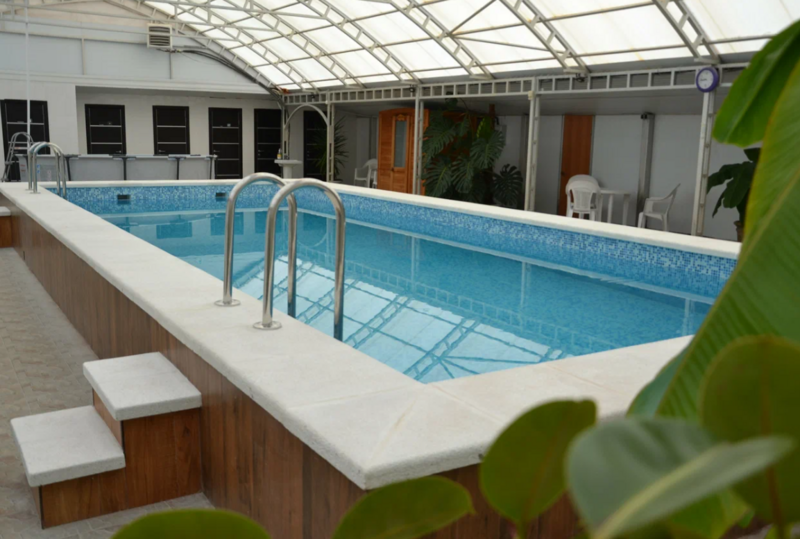 Посещение бассейна для проживающих в доме отдыха бесплатно.