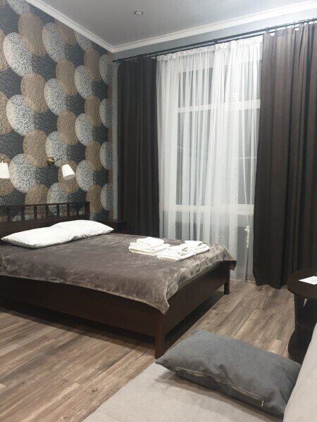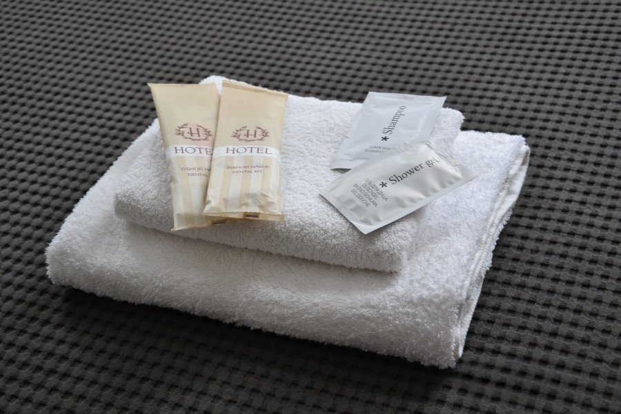В номерах установлена большая двуспальная кровать, а также есть холодильник, шкаф, прикроватные тумбочки, журнальный столик, телевизор, кондиционер, зеркало, душ, туалет, халат, тапочки, туалетно-косметические принадлежности (зубной набор, гель для душа, шампунь), электрочайник, кружки, чай, сахар.