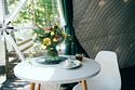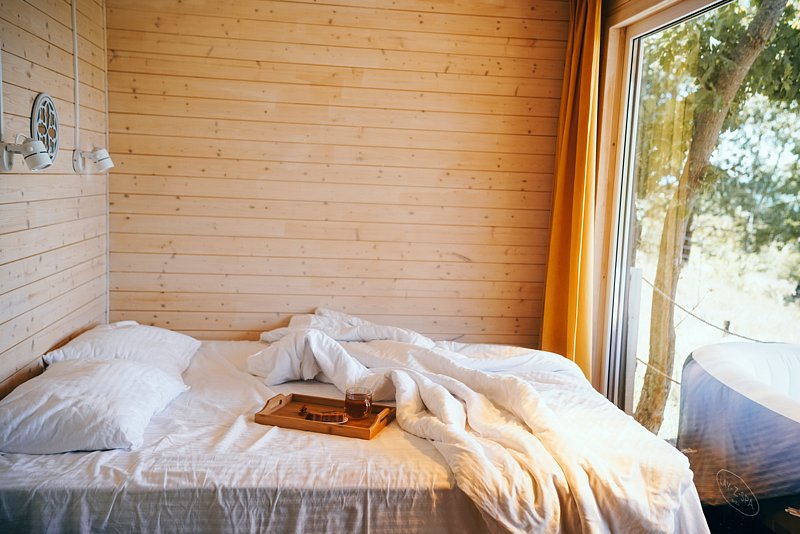 К услугам гостей - уютный в Скандинавском стиле домик с панорамным окном. У домика есть своя небольшая терраса, на которой удобно отдыхать, заниматься йогой или читать книги. Дополнительно предоставляем бассейн-джакузи с панорамным видом на террасе домика.