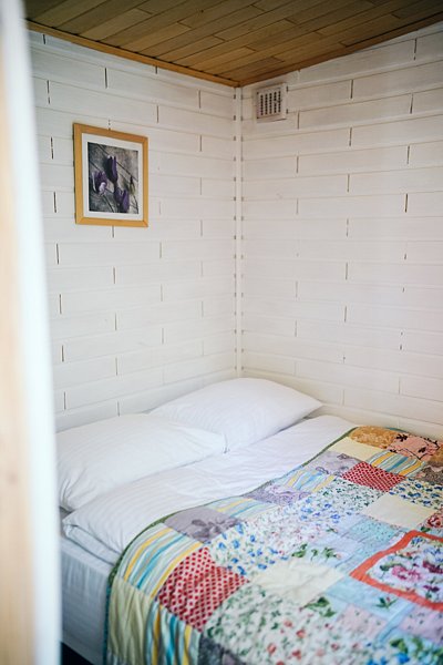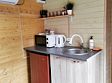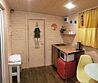 В домике есть всё необходимое для комфортного проживания: кухня, ванная комната, двухспальная кровать.