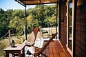 К услугам гостей - уютный и уединенный домик с панорамным окном на лес. Территория огорожена со своей мангальной зоной, беседкой. У домика есть своя небольшая терраса, на которой удобно отдыхать, заниматься йогой или читать книги.