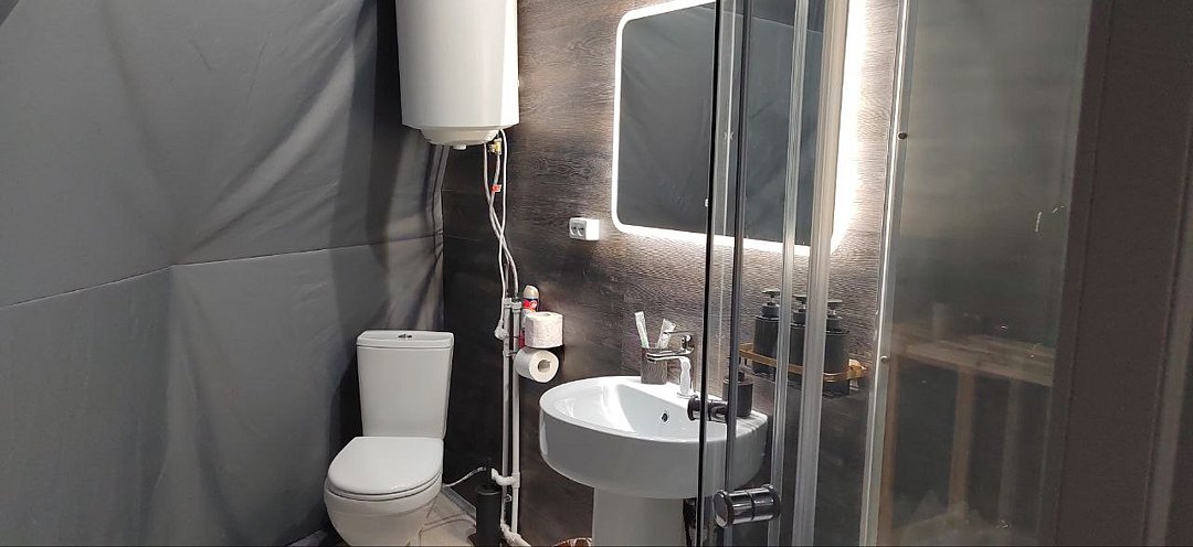 Семейный отдыхДостоинстваМы провели замечательные выходные в уютной сфере. Внутри все продумано до мелочей: от гигиенических принадлежностей до халатов. Внутри сферы достаточно просторно, каждый уголок продуман и обустроен с заботой. Здесь есть все необходимое для комфортного проживания - от кухонной утвари до чистой питьевой воды. От души рекомендуем это место для отдыха всей семьей - нам, взрослым и ребенку, здесь было очень комфортно. Благодарим владельцев за их труд и заботу.
