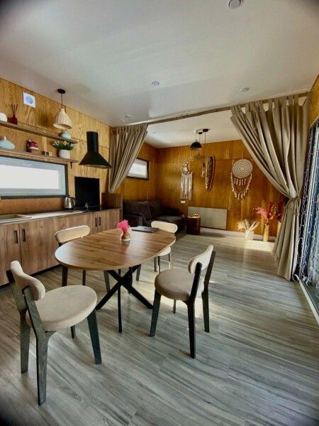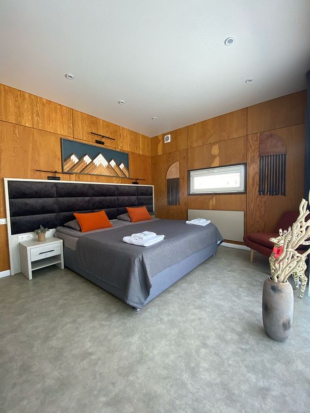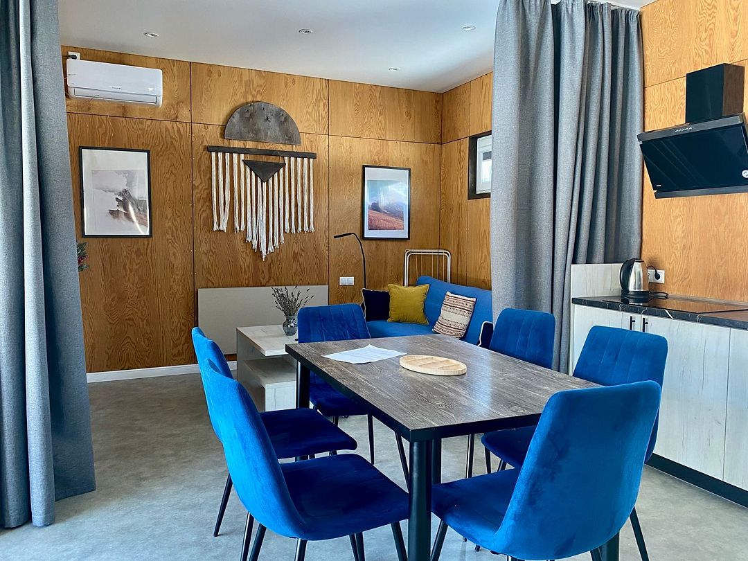 В коттеджах вместимостью до 6 человек создана уютная, расслабляющая обстановка со множеством удобств: 3 отдельные спальные зоны, кухня, оснащённая бытовой техникой, необходимой для приготовления еды, современный санузел с душем.