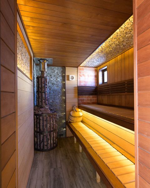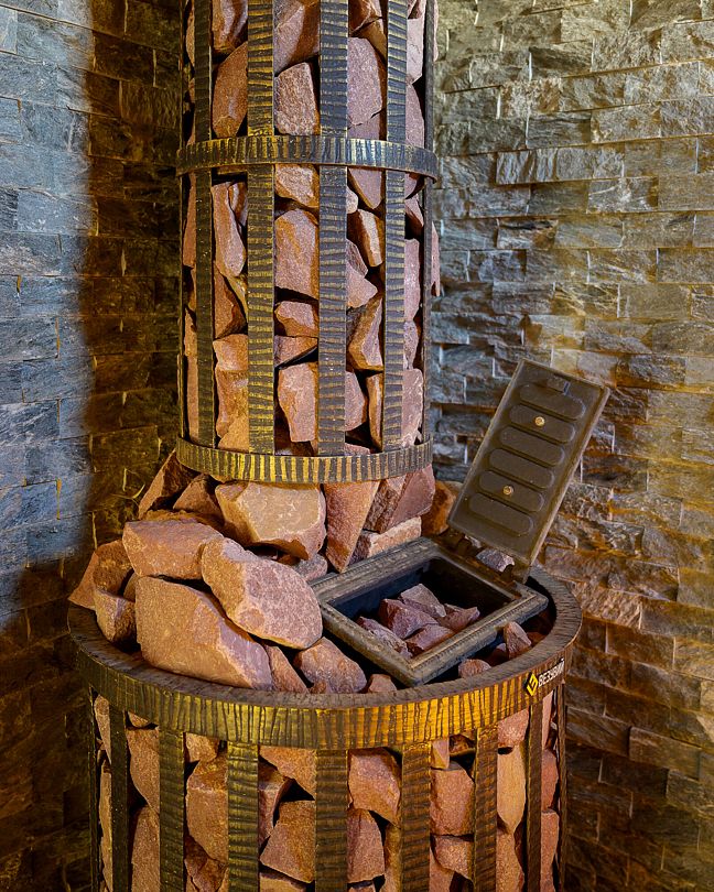 В парную заложено 1500 кг камня, установлена чугунная печь, чтобы процесс парки соответствовал русским банным традициям.