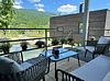 Из бани открывается панорамный вид на горы и есть выход к собственному пруду.