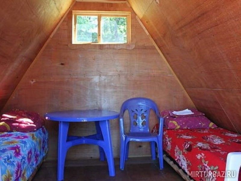 К размещению отдыхающих предлагаются домики-шале (12 кв.м.) с двумя кроватями, холодильником (и без).