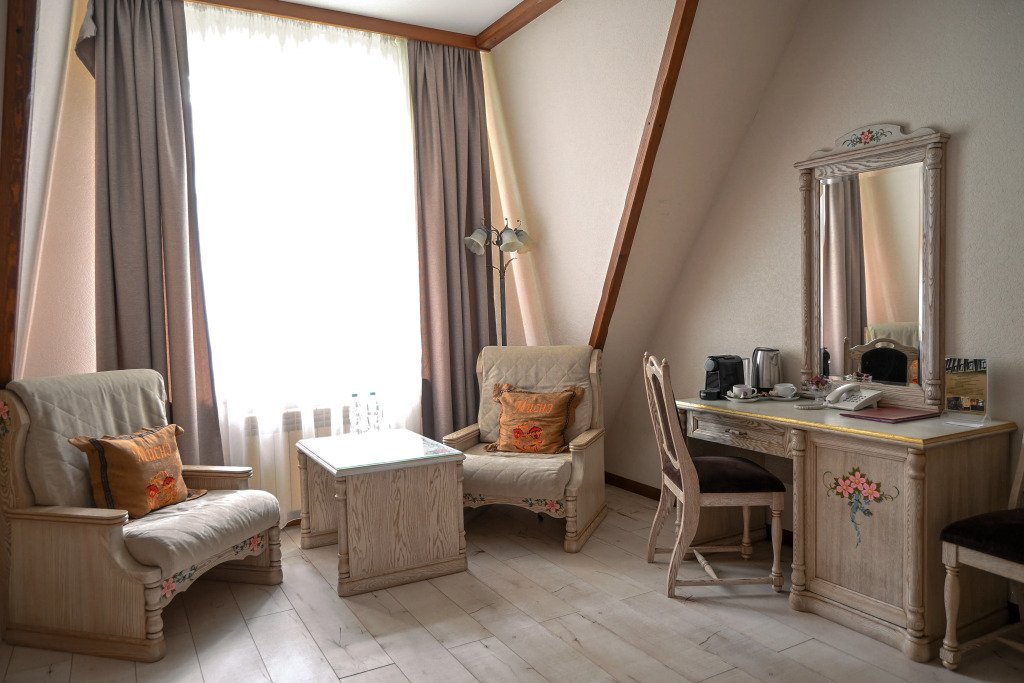 Номер уютно обставлен и оснащён необходимым, чтобы отдохнуть после долгого и насыщенного дня. Имеются телевизор, мини-бар и халат. Оснащение зависит от выбранной категории номера.
