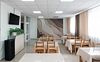На первом этаже организована украшенная живой зеленью лаундж-зона со столиками. Оборудована столовая, где желающие могут заказать завтрак. На территории предусмотрена закрытая автостоянка на 8 машиномест.