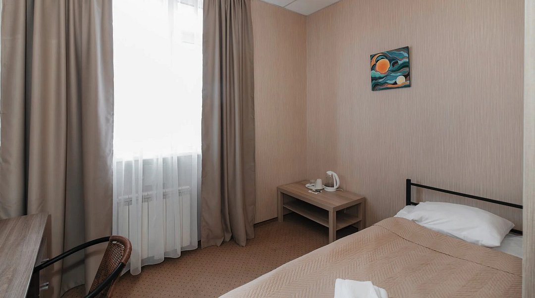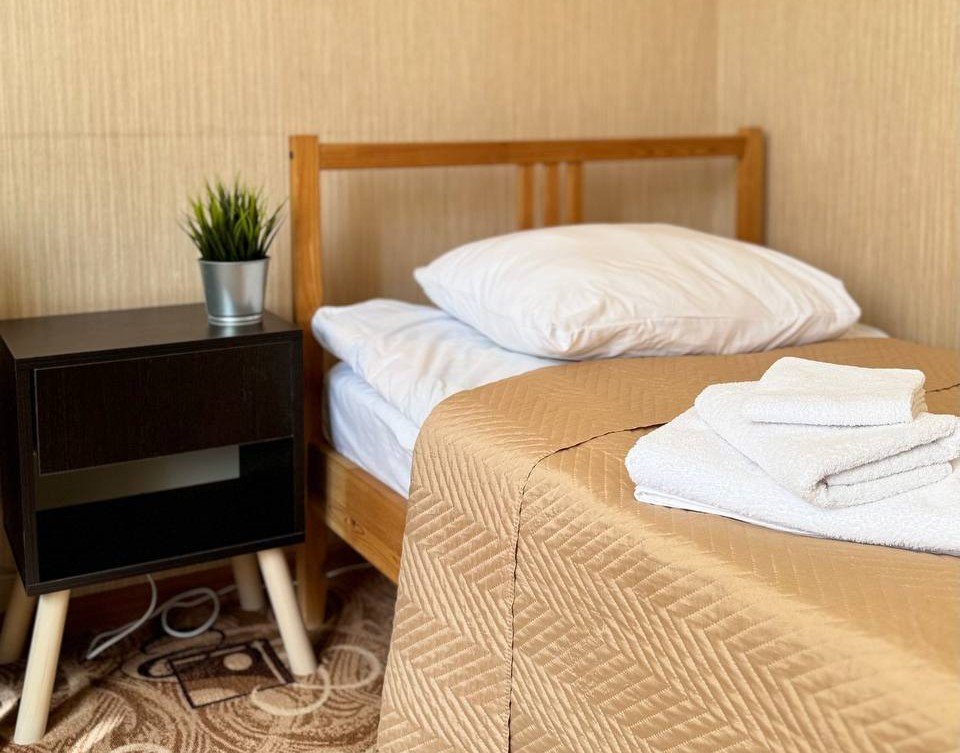 Гостевой дом представляет собой двухэтажное здание с цоколем. Жилой фонд представлен несколькими категориями размещения - от однокомнатных стандартов на одного до двухкомнатного номера на пятерых. Все варианты полностью подготовлены к заезду постояльцев, оснащены удобными спальными местами, рабочей зоной, кабельным ТВ, собственной душевой. Для гостей приготовлены тапочки, комплект полотенец, набор гигиенических принадлежностей. По запросу предоставляется фен. Доступно подключение к wi-fi.