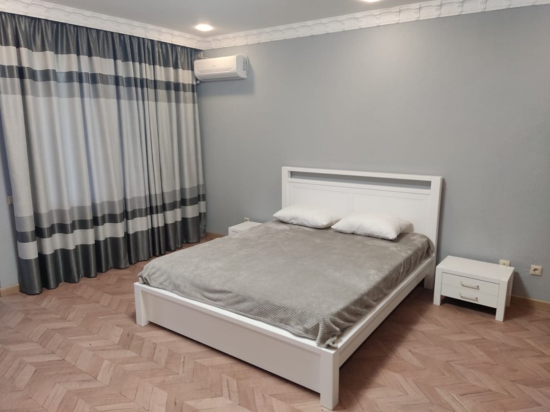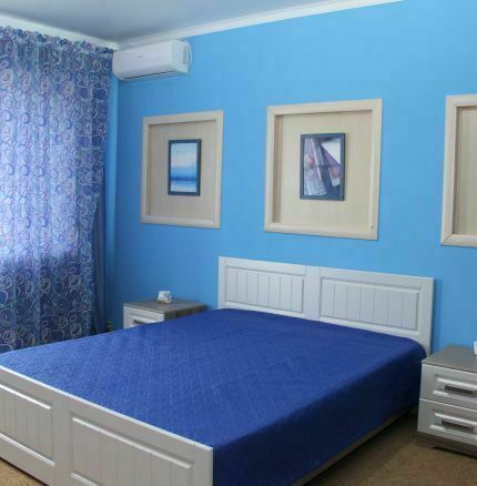 В номере: прихожая, шкаф, туалетная комната с душевой кабиной, кондиционер, плазменный телевизор, спутниковое ТВ. Спальня: две кровати 1,4 х 2 м, стол, стул, прикроватные тумбочки, комод.