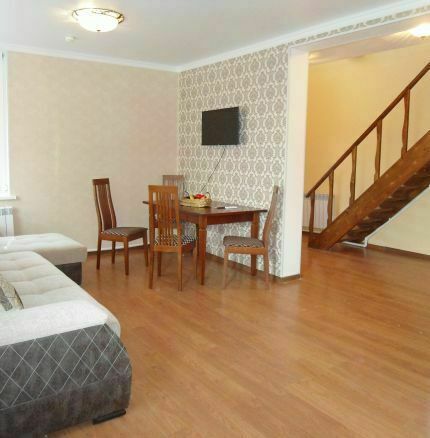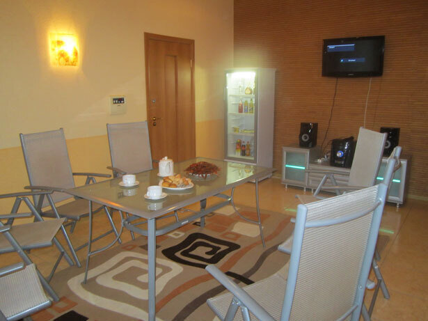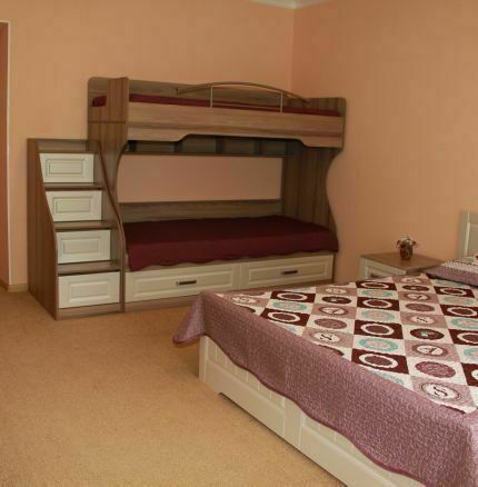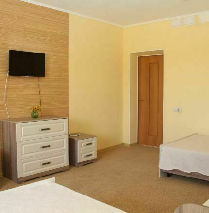В номере: прихожая, шкаф, холодильник, туалетная комната с душевой кабиной, кондиционер, два плазменных телевизора, спутниковое ТВ. Спальня: 1 двухместная кровать 2,0х1,6 м, двух-ярусная кровать 1,97х0,84 м., 2 прикроватные тумбочки, комод. Гостиная: большой раскладной диван 3,30х1,5 м., стол, 4 стула.