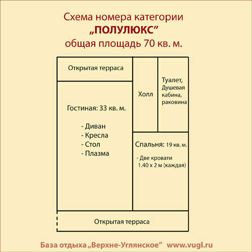 70 м2 · 2-х местный номер + 1 доп. место
