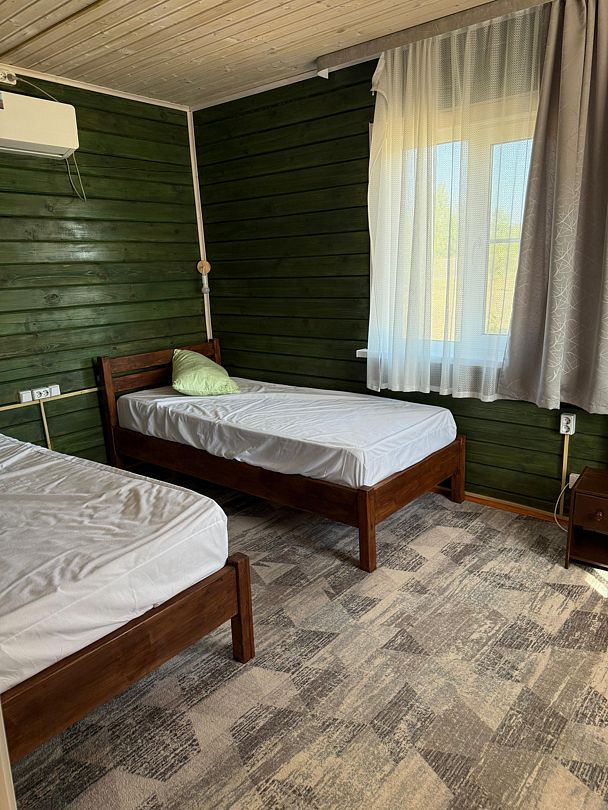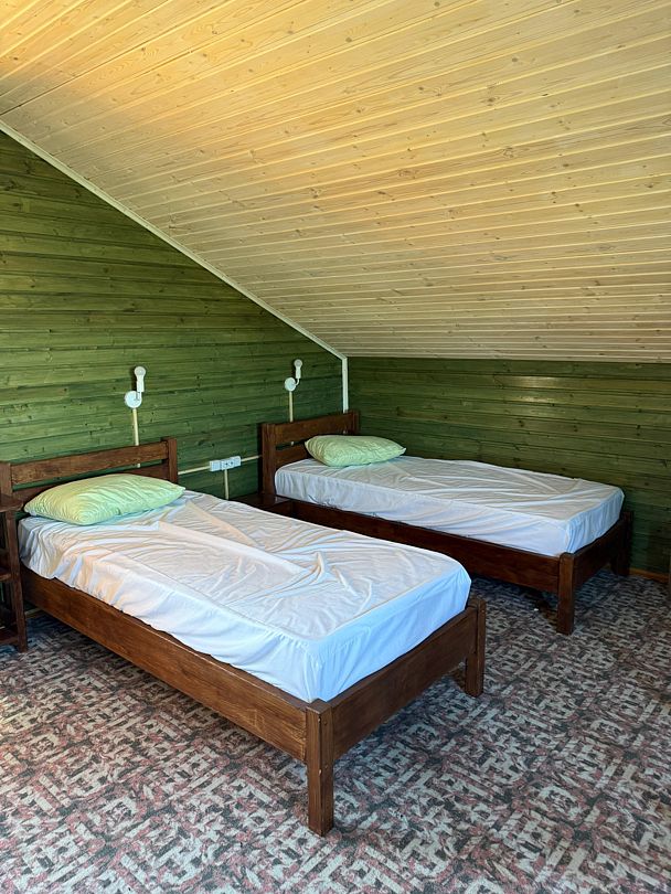 Четыре односпальные кровати, одно раскладное креслоВ коттедже