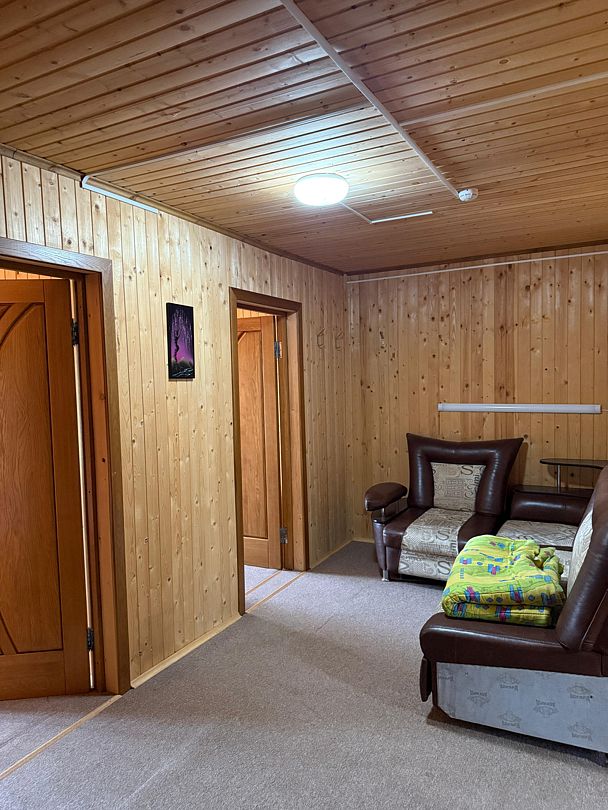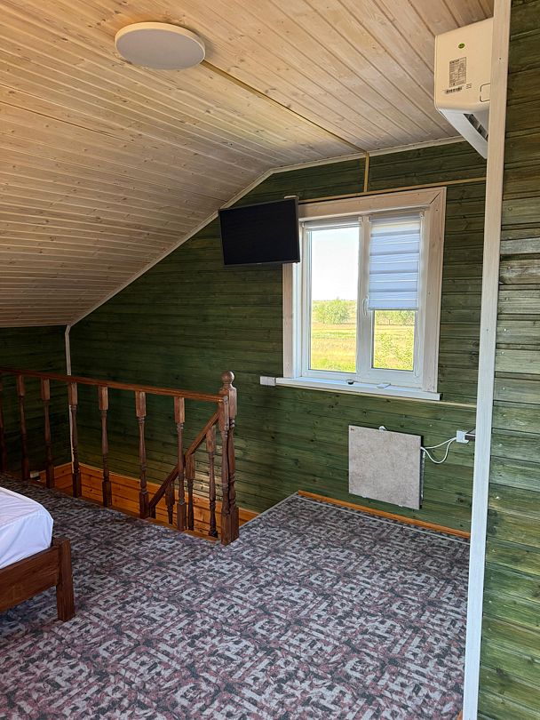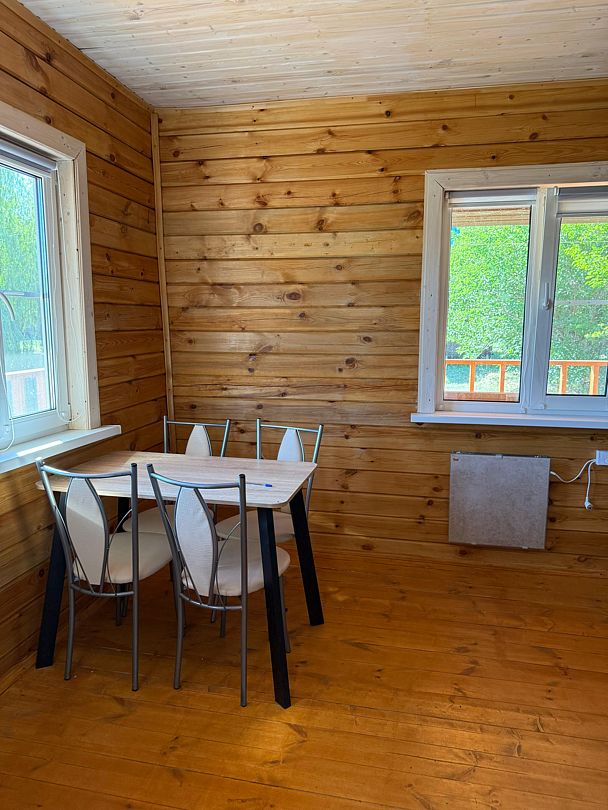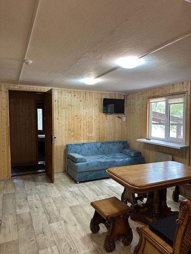 Размер 6х6 метров, веранда 6х2 метра. Сплит-система, умывальник, душевая кабина, унитаз. Проживание 4-6 человек. Гостиная. Две спальни.