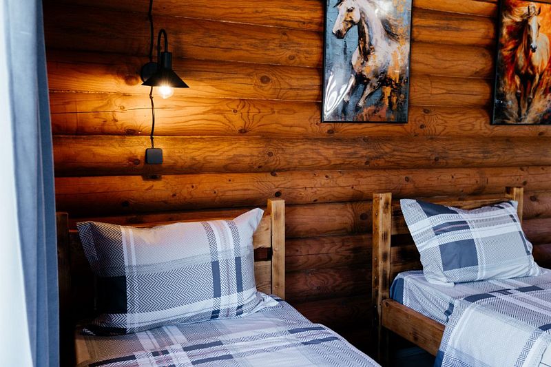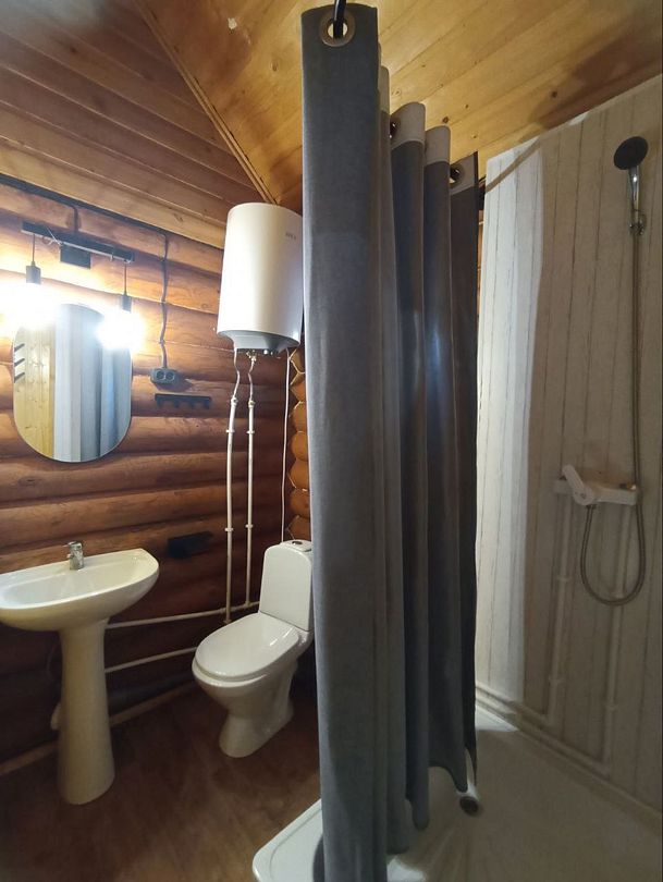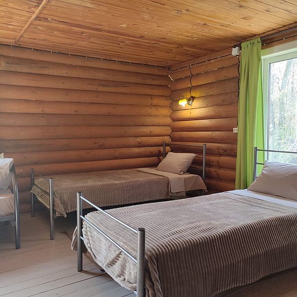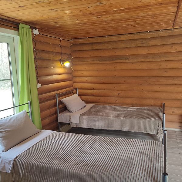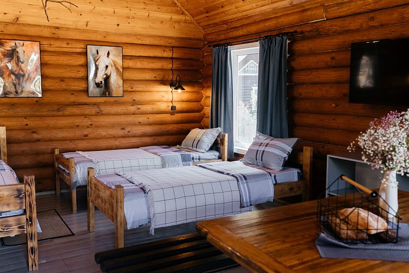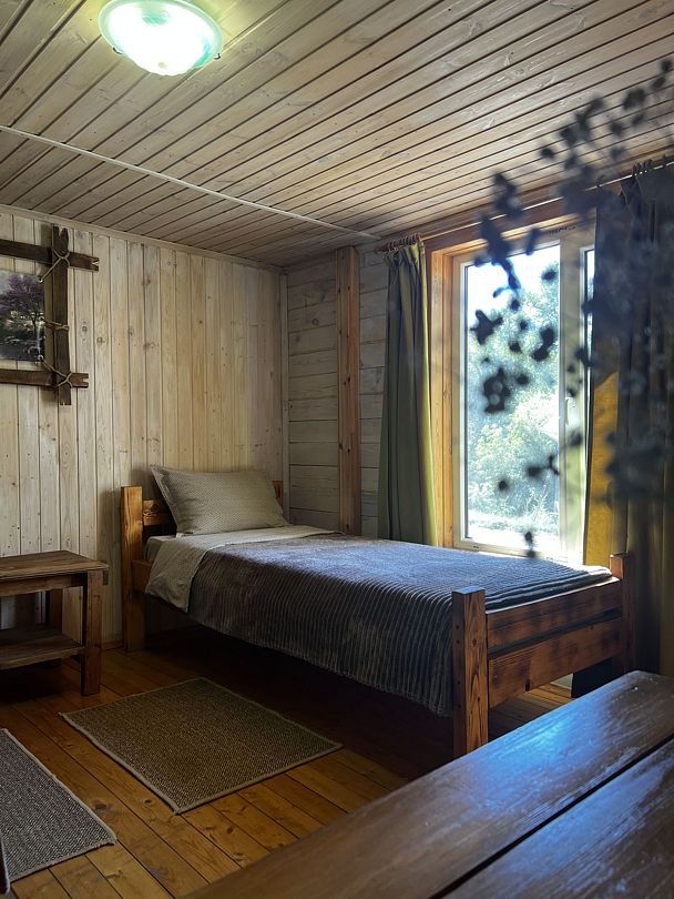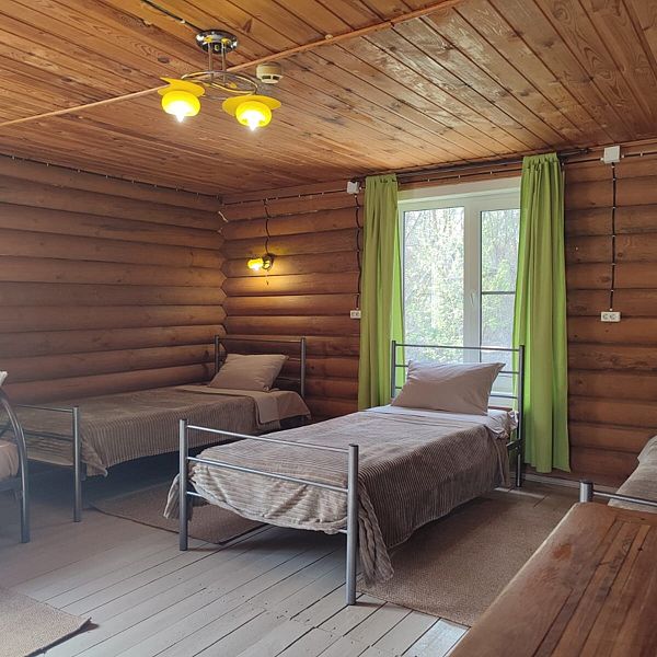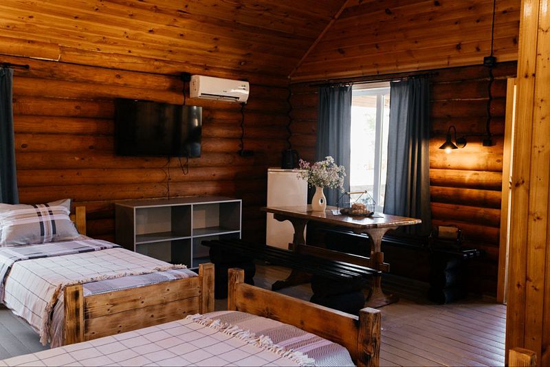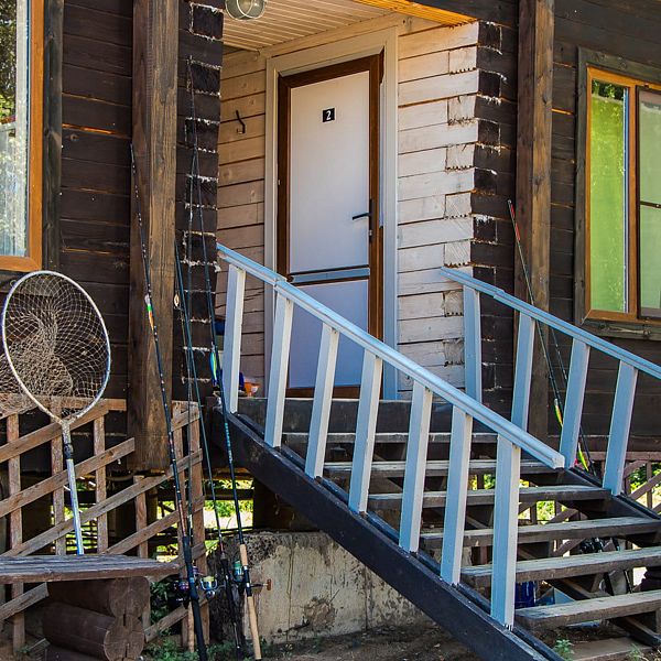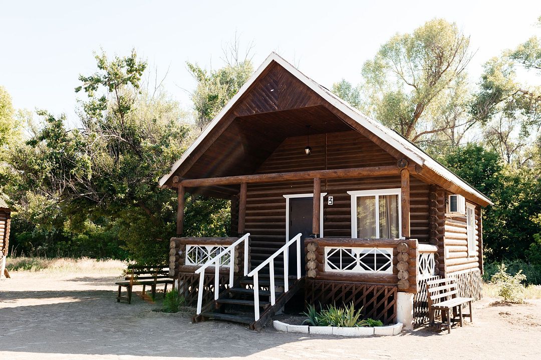 Проживание в деревянных отдельно стоящих коттеджах с удобствами.