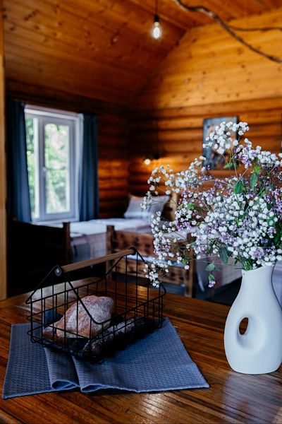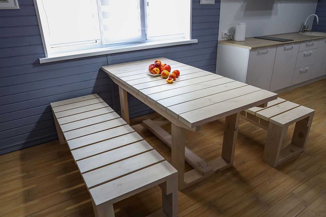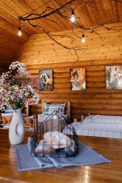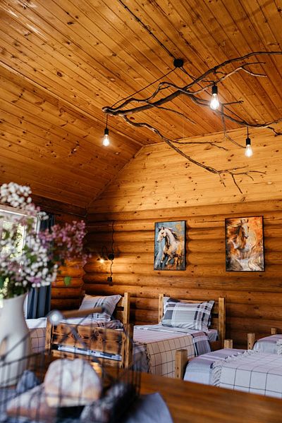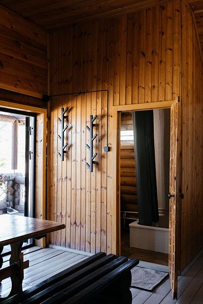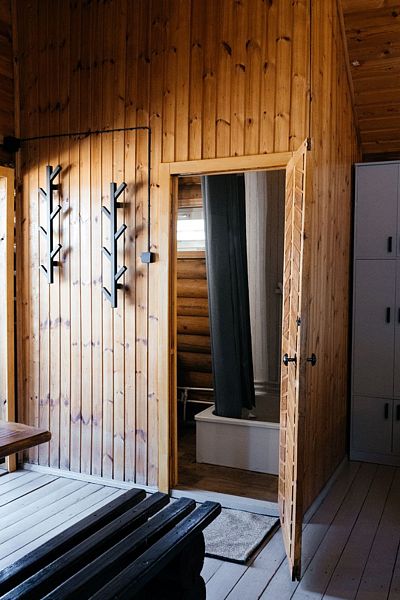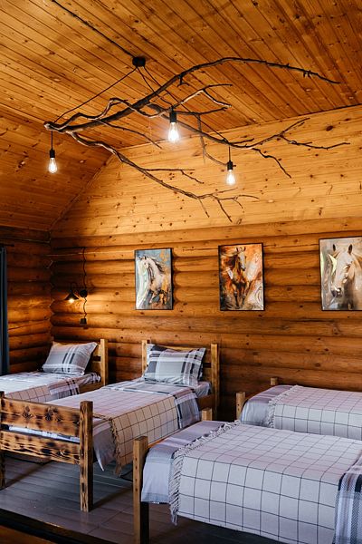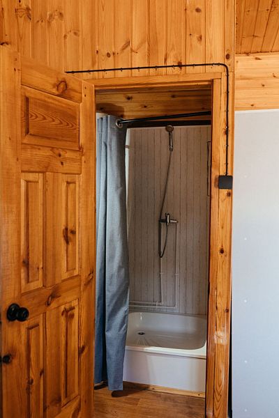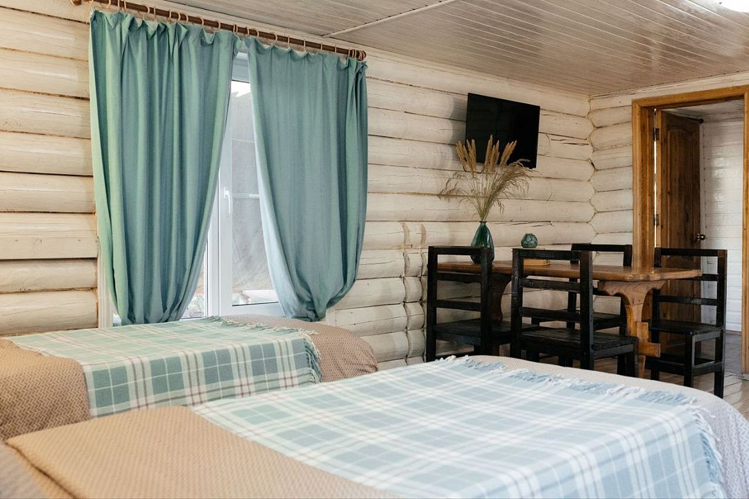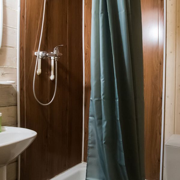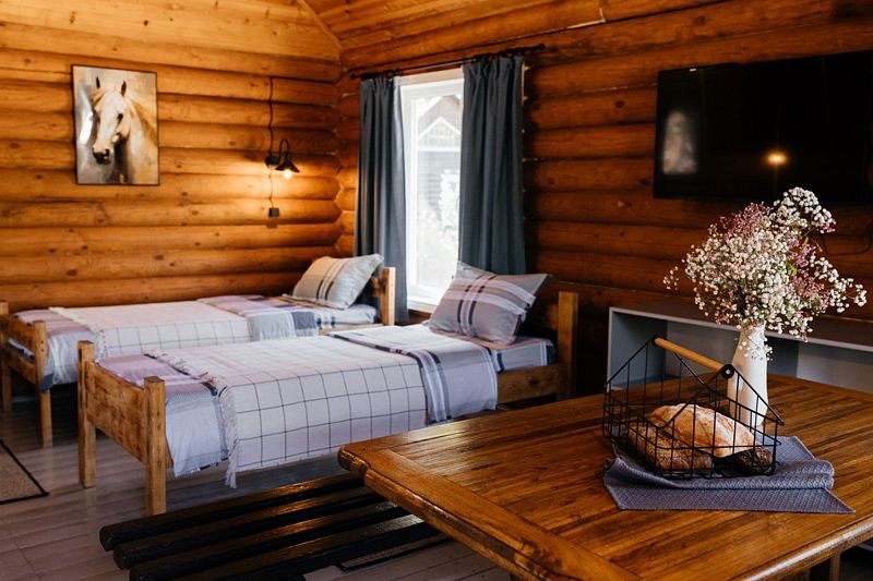 Проживание в деревянных отдельно стоящих коттеджах с удобствами.