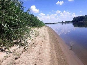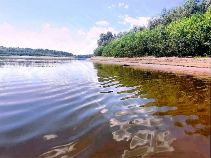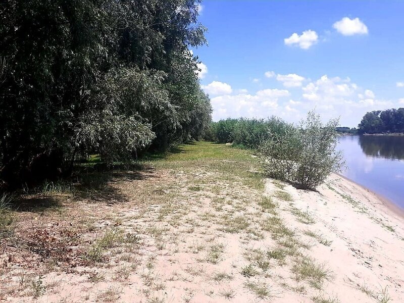 Уютные полянки для ваших палаток в лесу, на песчаном берегу расположенные в линию вдоль реки.