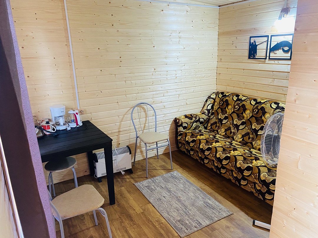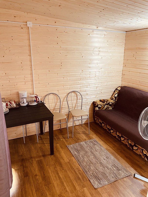 Благоустроенный домик: внутри вас ждет все для комфорта: спальня с двумя кроватями, гостиный уголок, душ с горячей водой, туалет, кондиционер, телевизор, холодильник, чайник и кофеварка.