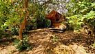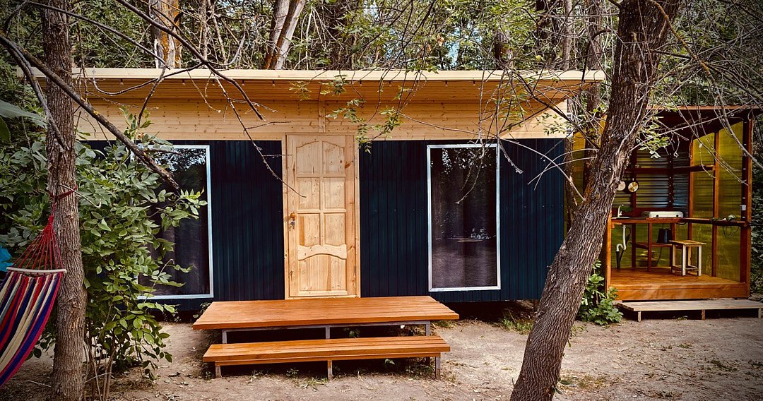 Мини деревня из эко-домиков в лесном массиве на берегу реки.