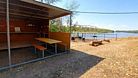 У каждого места своё большое пространство визуально огороженное, навесом со столом и лавками, напротив свой подход к воде с местом для береговой ловли и купания. Каждое место рассчитано минимум на установку двух больших палаток и шатра для кухни.