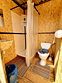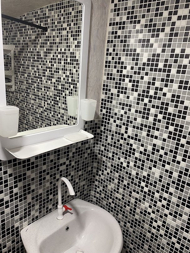 Отдельная (личная) кабинка с душем и туалетом, вода горячая и холодная.