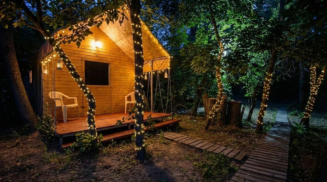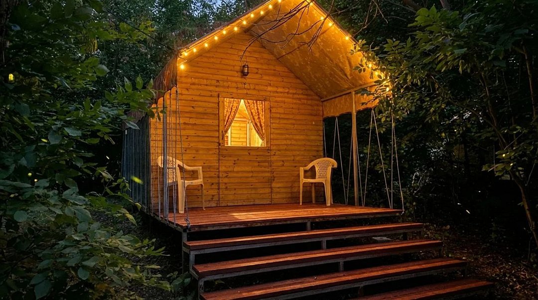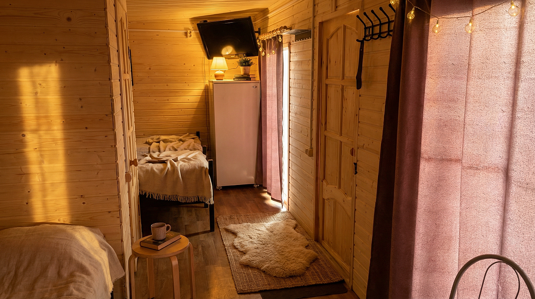 Утепленный глэмпинговый домик с отоплением и кондиционером.