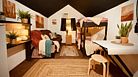 Обращаем ваше внимание, что два спальных места находятся на антресоли с лестницей 200 см. И двумя матрасами 190х70см.