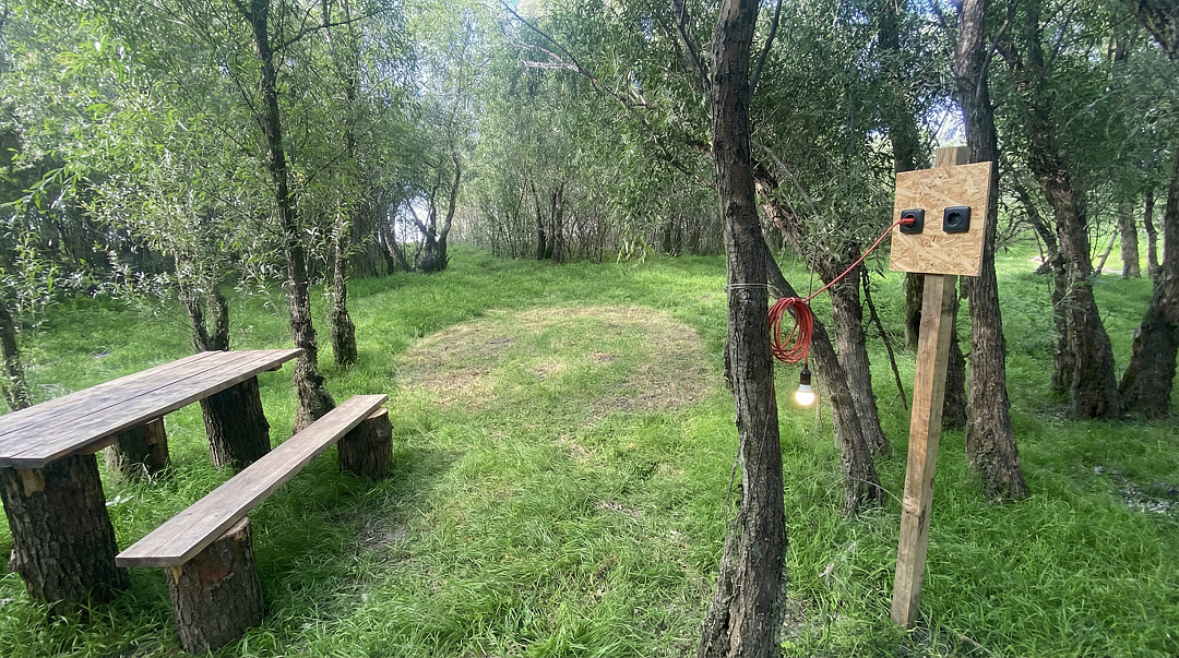 Кемпинговые места размещены в лесном массиве на берегу реки и разделены расстоянием не менее 20 метров между соседними местами.