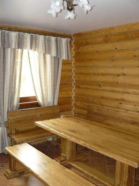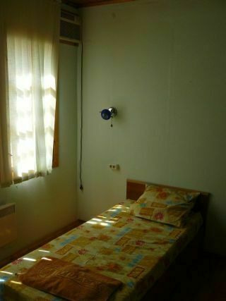 Одноэтажный дом из бруса, оборудованный системами охлаждения летом и отопления зимой, для небольшой дружной компании или семьи из пяти человек. Состоит из двух изолированных половинок: один номер на 2 человек, другой на 5 человек.