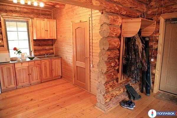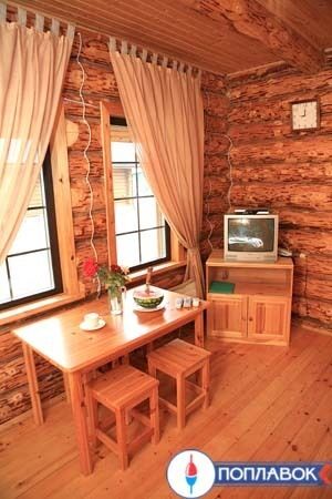 На территории 6 таких домиков. Уютный одноэтажный дом-сруб в русском стиле общей площадью 57 кв.м. Идеально подходит для небольшой компании или семьи из 4-х человек. Внутри: 2 спальни с кондиционерами (2 кр. + 2 кр.); кухня со всей необходимой утварью (есть плита) полностью оборудованная для самостоятельного приготовления пищи; столовая - гостиная с телевизором с приставкой "Триколор"; туалет, душ с гидромассажем. Возможно предоставление дополнительного спального места. К услугам проживающих - морозильный ларь для хранения рыбы. На территории имеется 6 домиков типа "Изба".