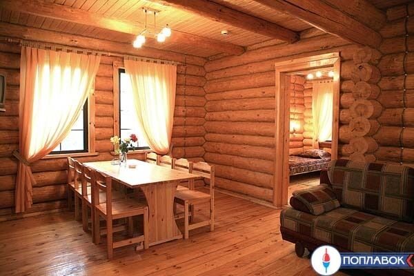 Просторный 2-х этажный дом, выполненный в русском стиле из цельного бруса. Общая площадь 140 кв.м. На территории базы есть 3 таких дома.