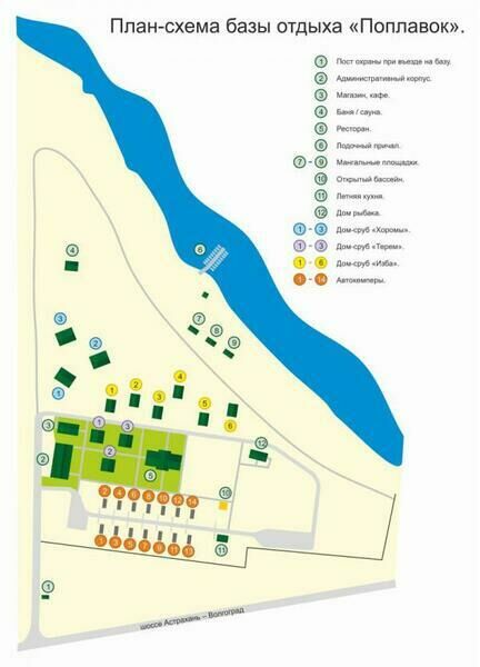 - Трасса М6 «Каспий» до г. Волгограда. В Волгограде необходимо пересечь р. Волгу по новому мосту по направлению на Краснослабодск, затем Среднюю Ахтубу, затем Ленинск, Знаменск, Ахтубинск продолжать движение до с. Михайловка (Астраханская область) и через 7 км будет поворот направо, на базу отдыха «Поплавок».