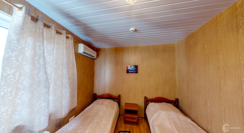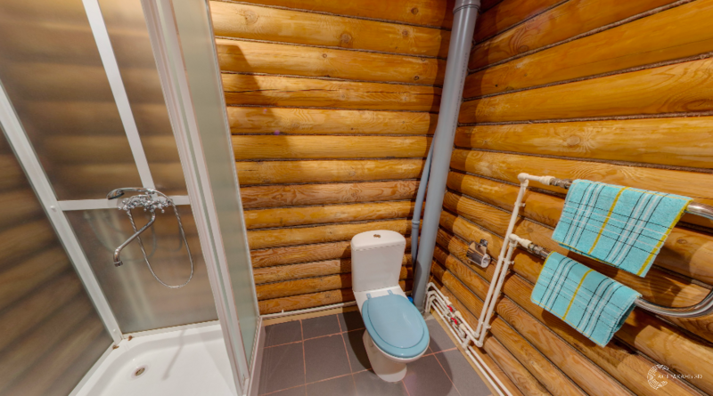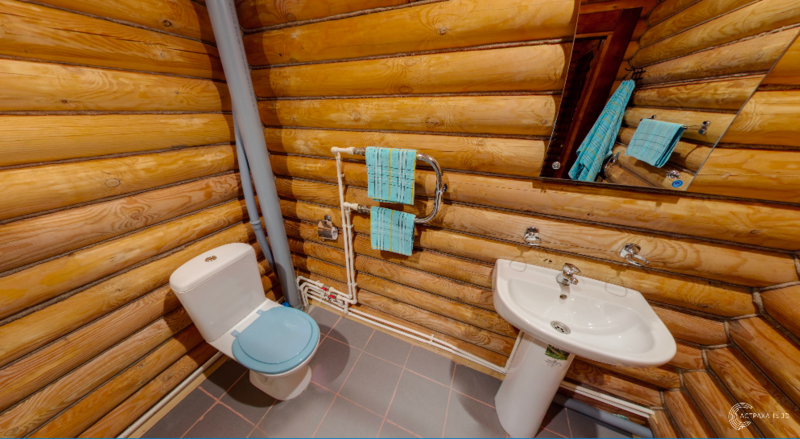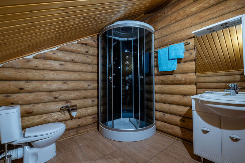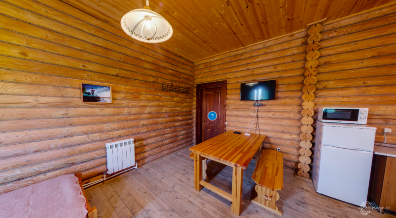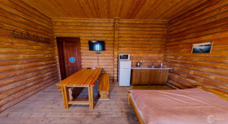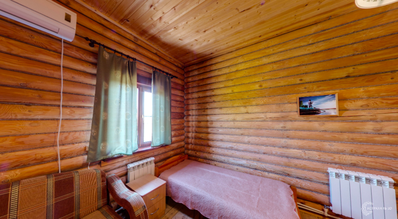 Деревянный терем, состоящий из 8 отдельных просторных и уютных номеров, в каждом из которых с комфортом может разместиться 3-4 гостя. Предоставляются постельные принадлежности, во всех номерах есть телевизор, морозильный ларь для пойманной рыбы, холодильник, микроволновка. В каждом номере собственный душ и туалет.