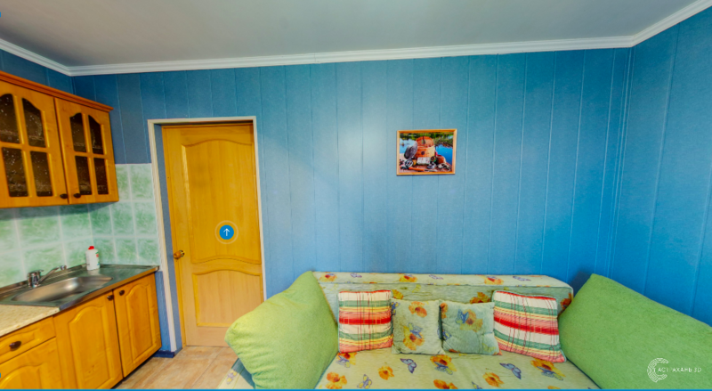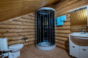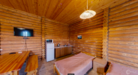 Большая гостиная, с раскладывающимся диваном, телевизором, холодильником и микроволновкой. В коттедже есть душ и туалет. При необходимости раскладывающийся диван может использоваться как дополнительное спальное место (оплачивается отдельно).