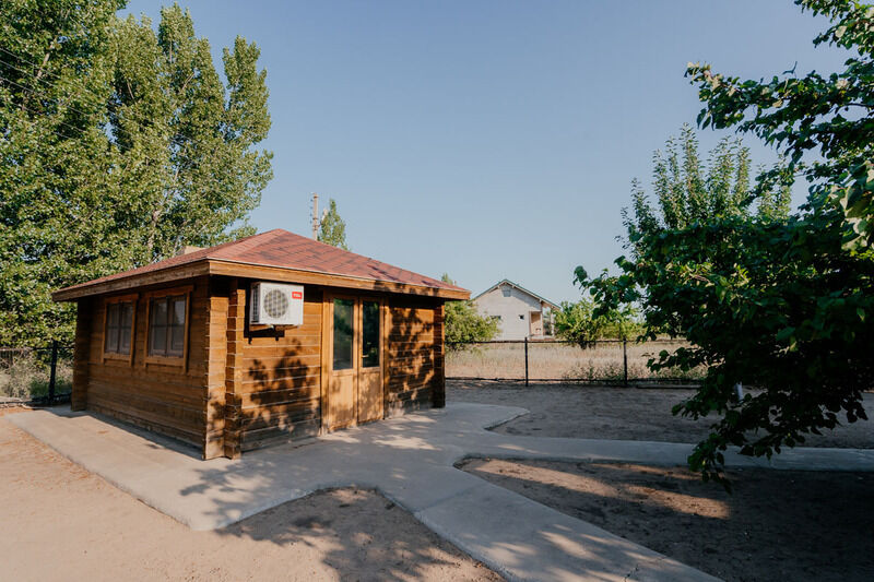 База находится в одном из самых интересных мест низовий Волги - на высоком, живописном берегу реки Митинки, на территории яблоневого сада, в 130 км от Астрахани.