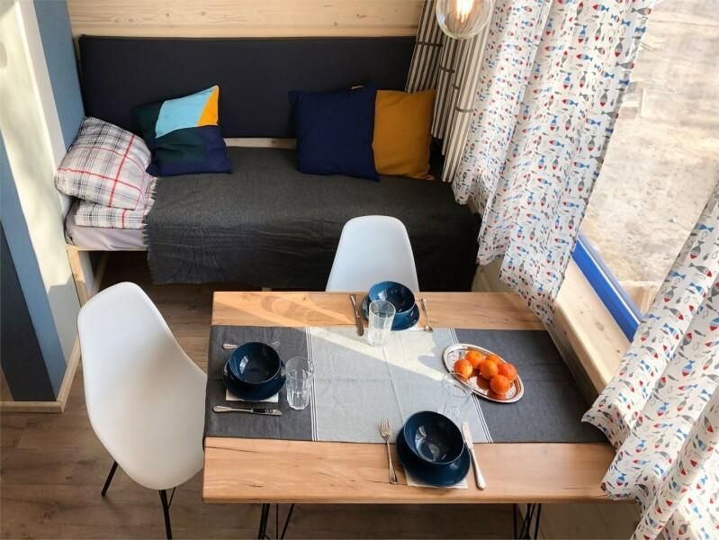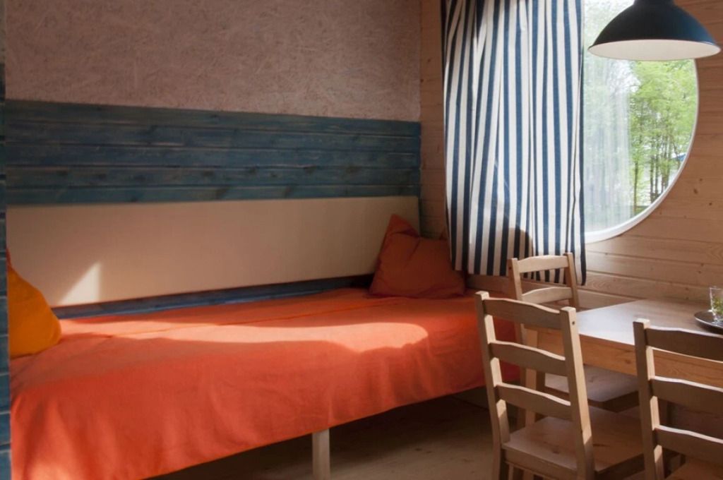 Для большего удобства глэмпы разделены на две зоны: спальную и гостиную.